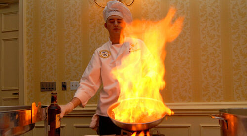 Das Wasser verdampft blitzartig in den einige hundert Grad heißen Fett und wird aus der Pfanne geschleudert. Diese Fettexplosion kann zu schweren Verletzungen und Wohnungsbränden führen.
