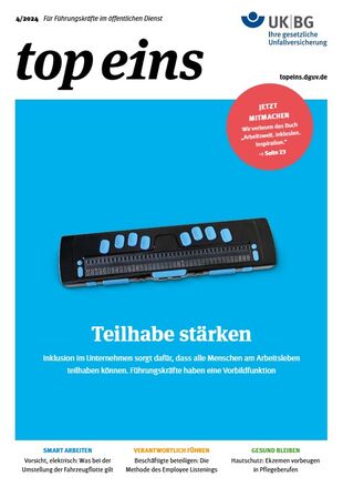 Mit einem Mix aus Schwerpunktbeiträgen, Fachartikeln, Interviews und Meldungen greift das Magazin top eins praxisnah und branchenübergreifend Management-Themen auf, die Führungskräfte bei gesunder und sicherer Arbeit unterstützen.